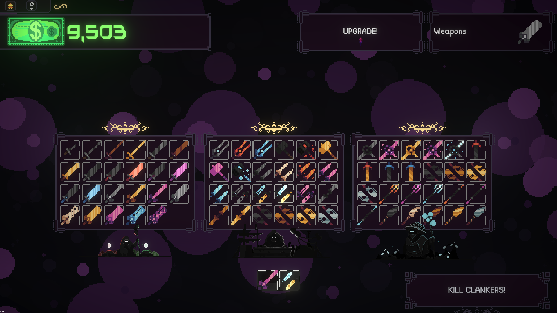 Clankers! is a short incremental robot killing game. Kill Clankers, gather money and spend it on weapons and upgrades to stop Clankers from stealing our jobs!